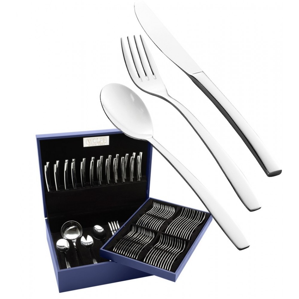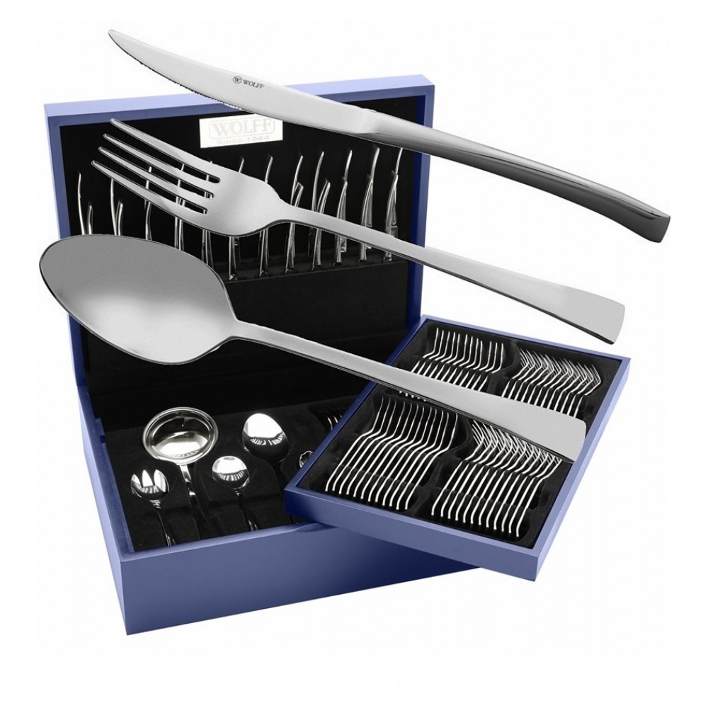 Faqueiro 101 Peças London Forjado Liso Em Aço Inox Wolff Com Estojo De Madeira